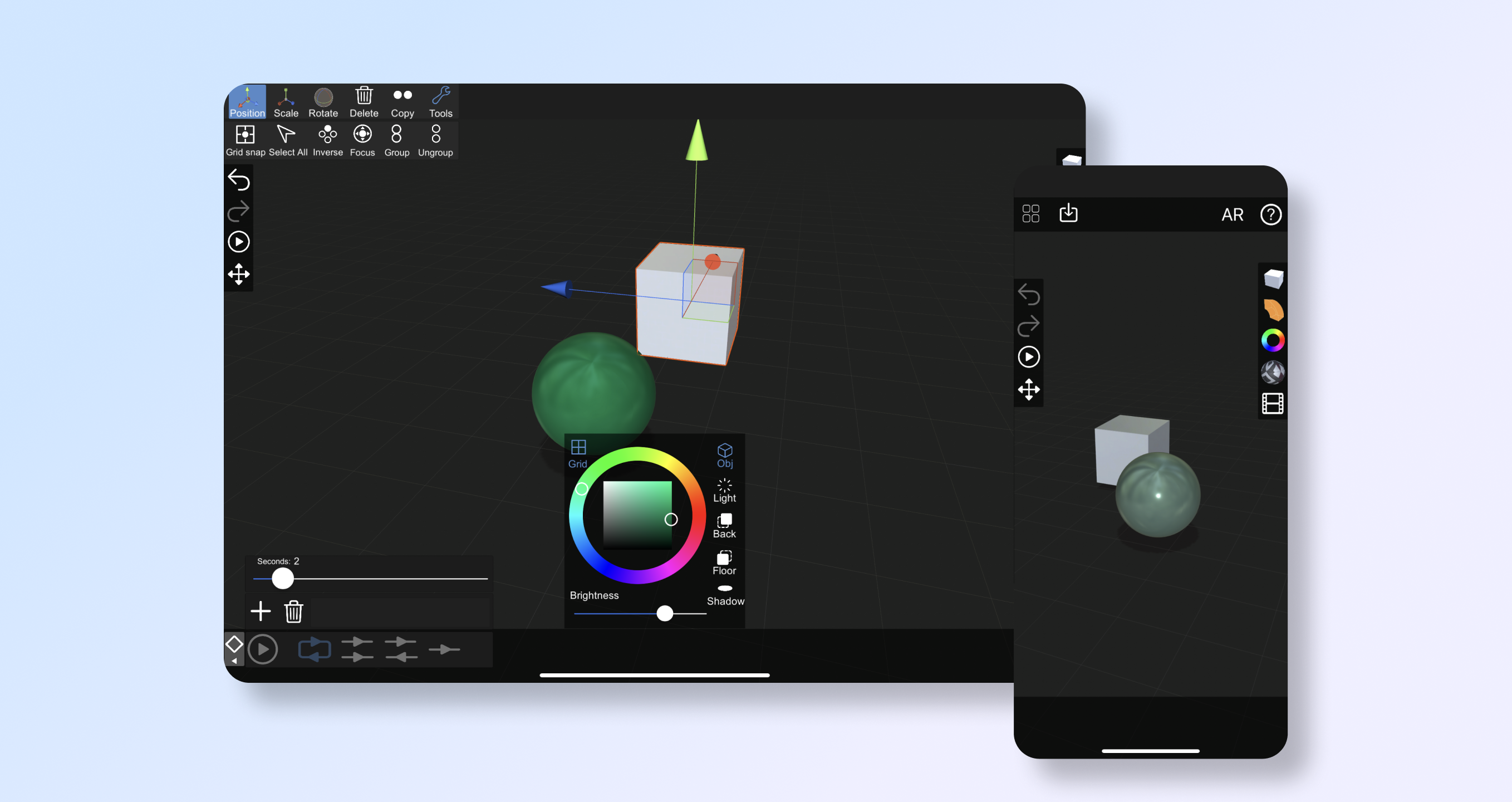Users can also view the animations in AR, as well as scaling and rotating the scene.